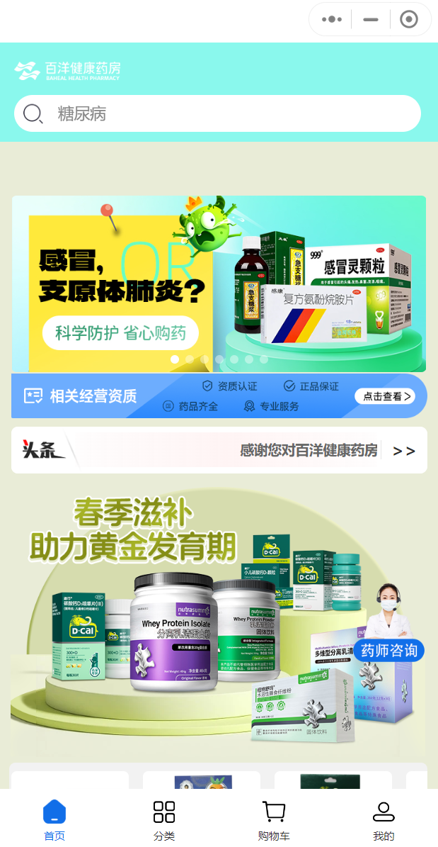 百洋家健康平台与知名药店合作,确保药品品质,确保您能够方便快捷地购买到所需药品,不再需要奔波于药店之间,只需动动手指,药品就能送到您家门口。