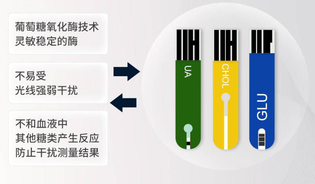 一机三测,在家就能监测三项血检:血糖、血尿酸、总胆固醇;