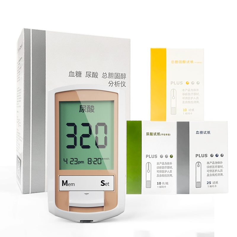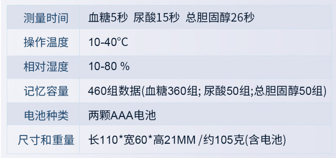 一机三测,在家就能监测三项血检:血糖、血尿酸、总胆固醇;