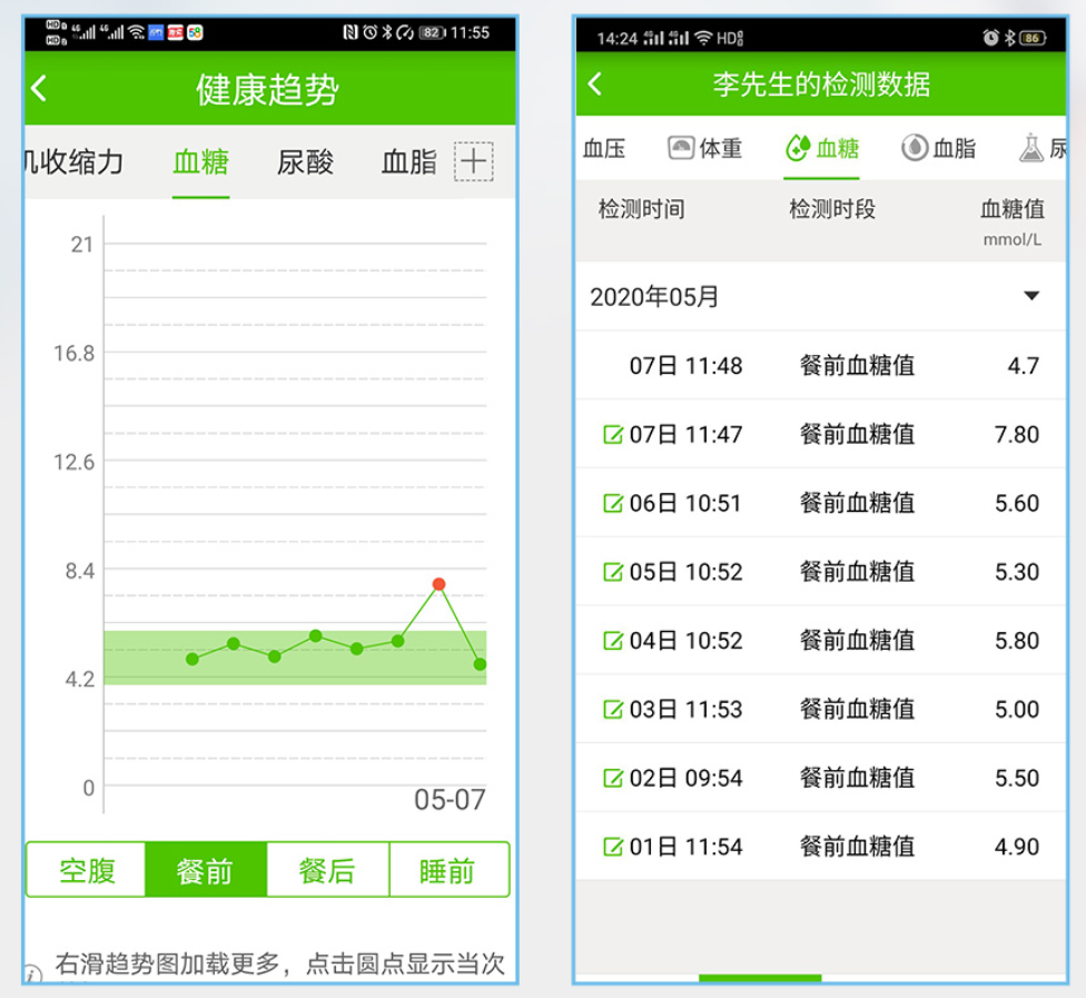 记忆存储,随时监测记录:家庭医生和子女能根据远程数据了解您的健康情况;